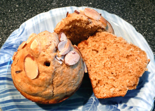 2 cups whole wheat flour 1?2 cup peanut butter 1?2 teaspoon salt 3 teaspoons baking powder 2 beaten eggs 1 cup milk 3 tablespoons brown sugar or 1 1/2 tablespoons Splenda brown sugar blend 2 tablespoons melted butter or 2 tablespoons margarine