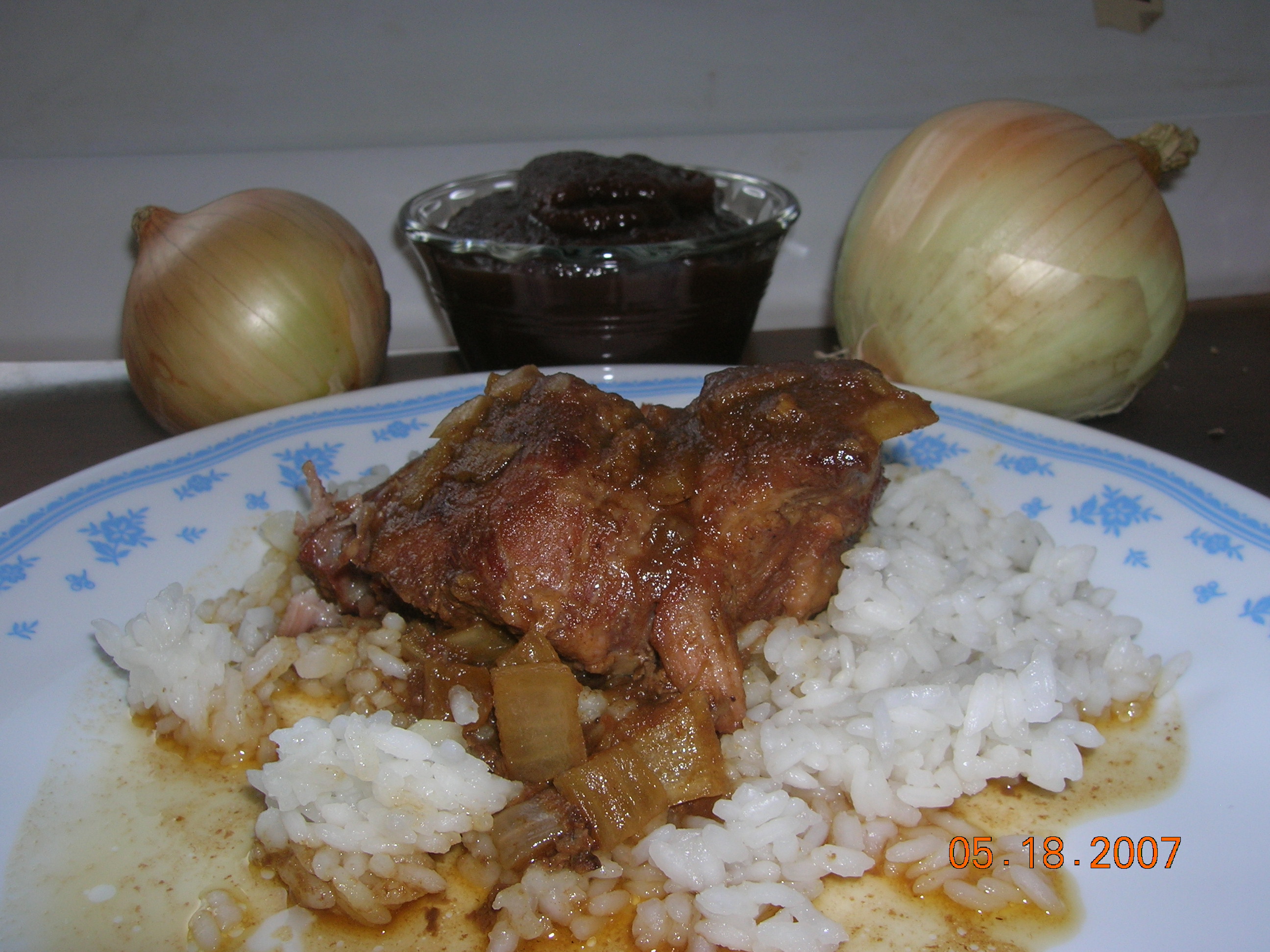 Rub salt and pepper on ribs. Place in crock pot. Cover with onions. Mix remaining ingredients and pour over onions. Cover and cook on low for 9 hours.