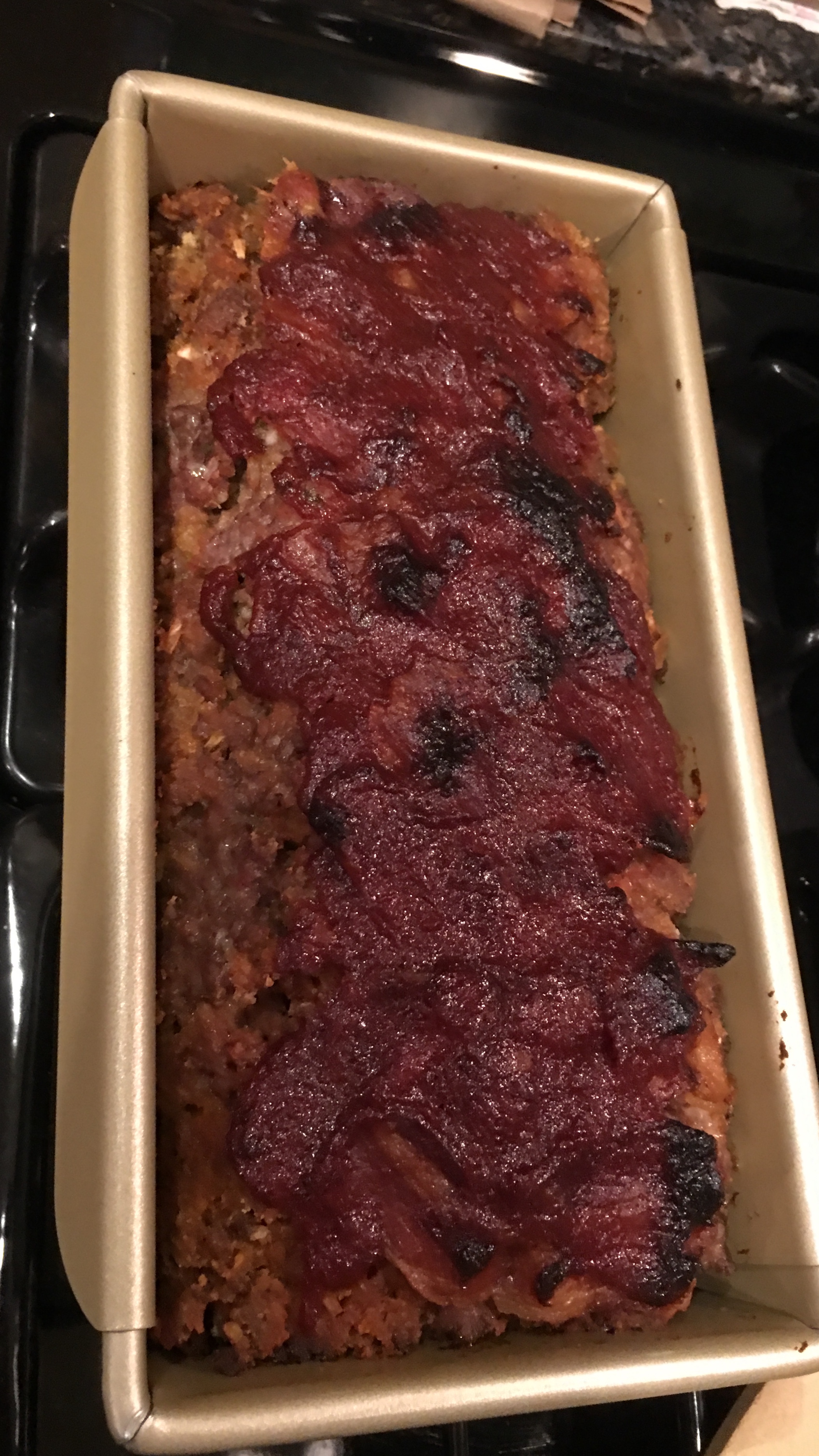 2 lbs ground round 1 1?2 cups breadcrumbs 1 teaspoon Accent seasoning 1 (1 1/4 ounce) package Lipton Onion Soup Mix 3 slices bacon 2 eggs 3?4 cup catsup chili sauce (or 8 oz. tomato sauce) (optional)
