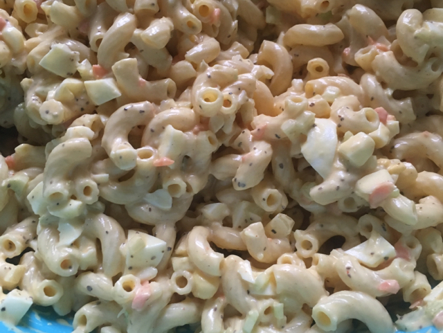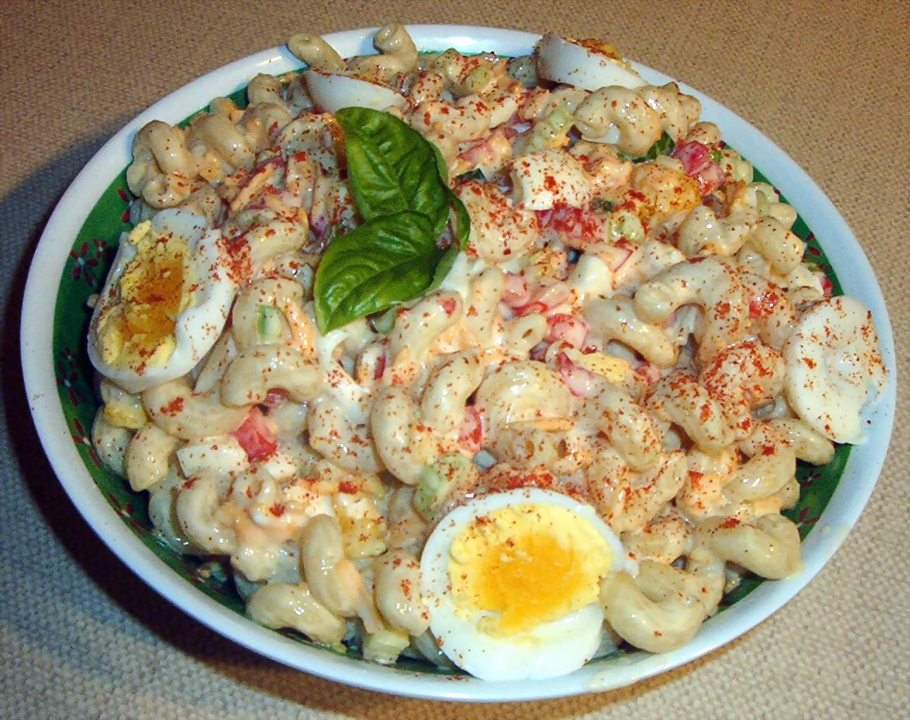 Cook macaroni as directed on package; Drain& cool. In a bowl, whisk together the dressing ingredients so they are well-combined and smooth. In a large bowl, gently combine the macaroni, celery, carrots, onions, and remaining eggs. Fold the dressing gently into the macaroni salad mixture. Place into your serving bowl and garnish with the reserved slice egg and paprika. Let sit overnight for the best results. NOTE: It was not in the original recipe, but I sometimes add 1/4 to 1/2 cup chopped green pepper if I have it around.