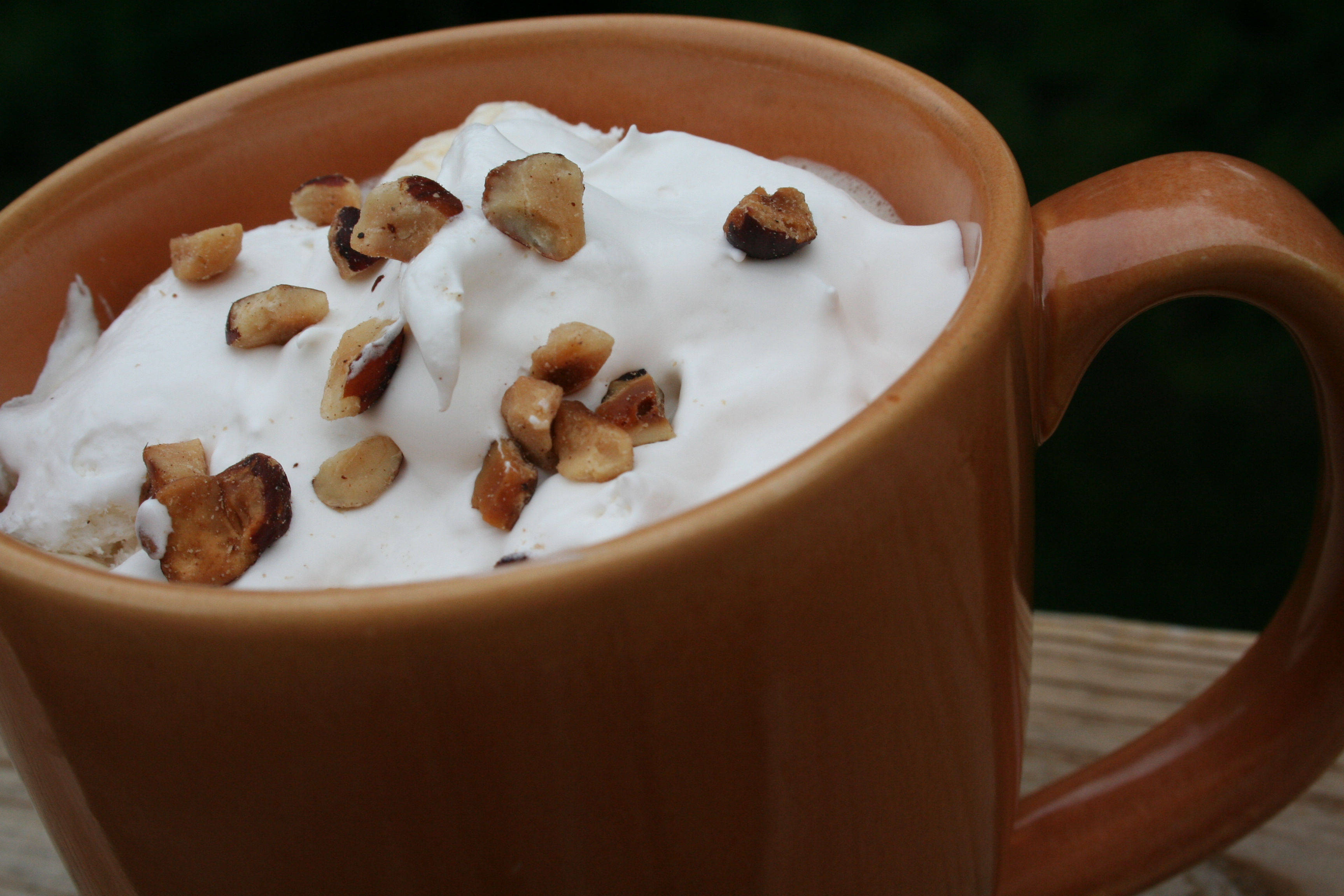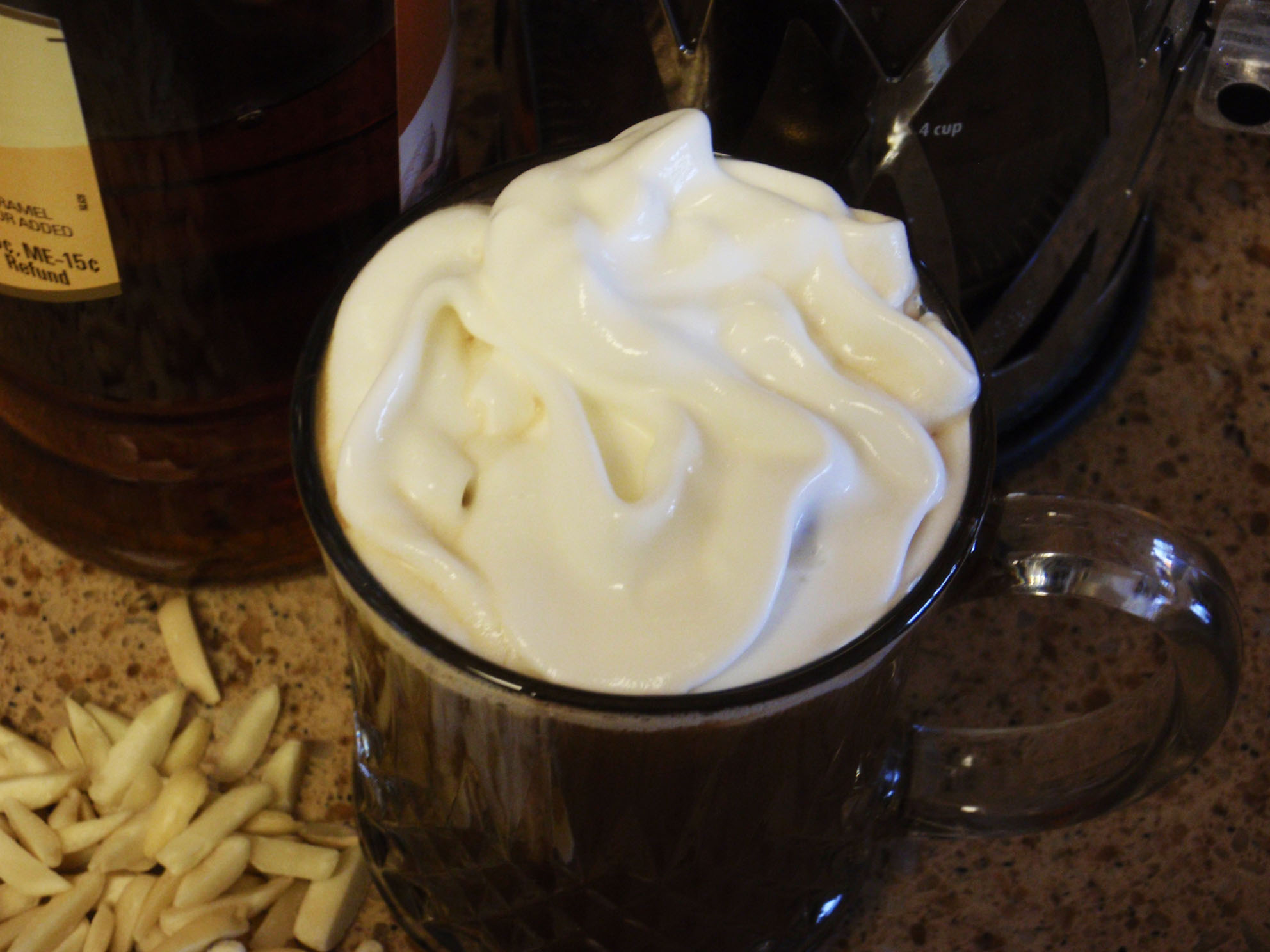 8 ounces hot coffee (freshly brewed on the stronger side) 1 tablespoon Amaretto (or more to taste) whipped cream toasted slivered almonds