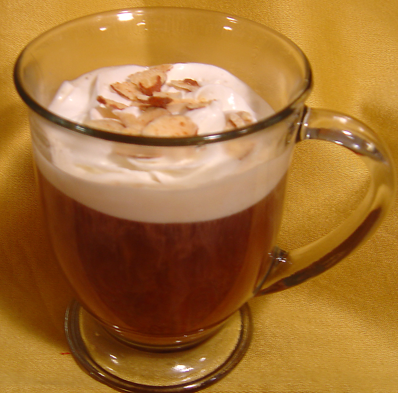 Stir 1 to 2 tablespoons amaretto liqueur into a cup of strong coffee. Top with whipped cream and garnish with the toasted almond.