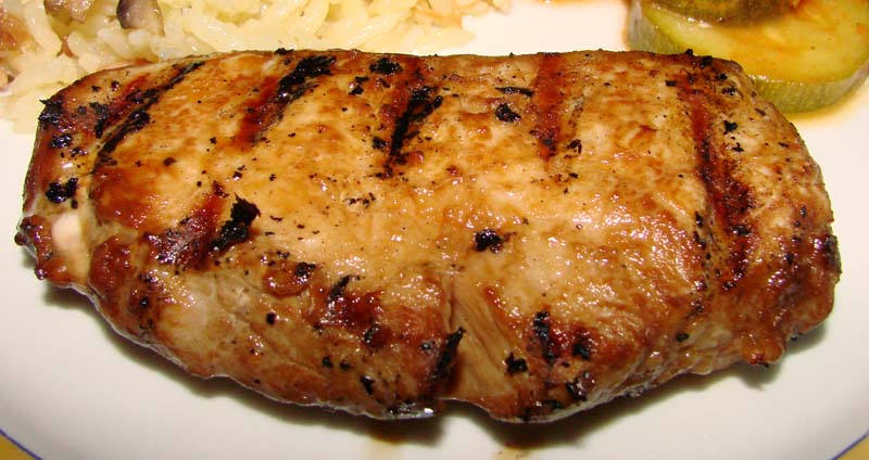 4 boneless 1-inch thick pork tenderloin 1?4 cup soy sauce 1?4 cup apple juice 2 tablespoons brown sugar 1?2 teaspoon onion powder 1?4 teaspoon salt 1?4 teaspoon pepper