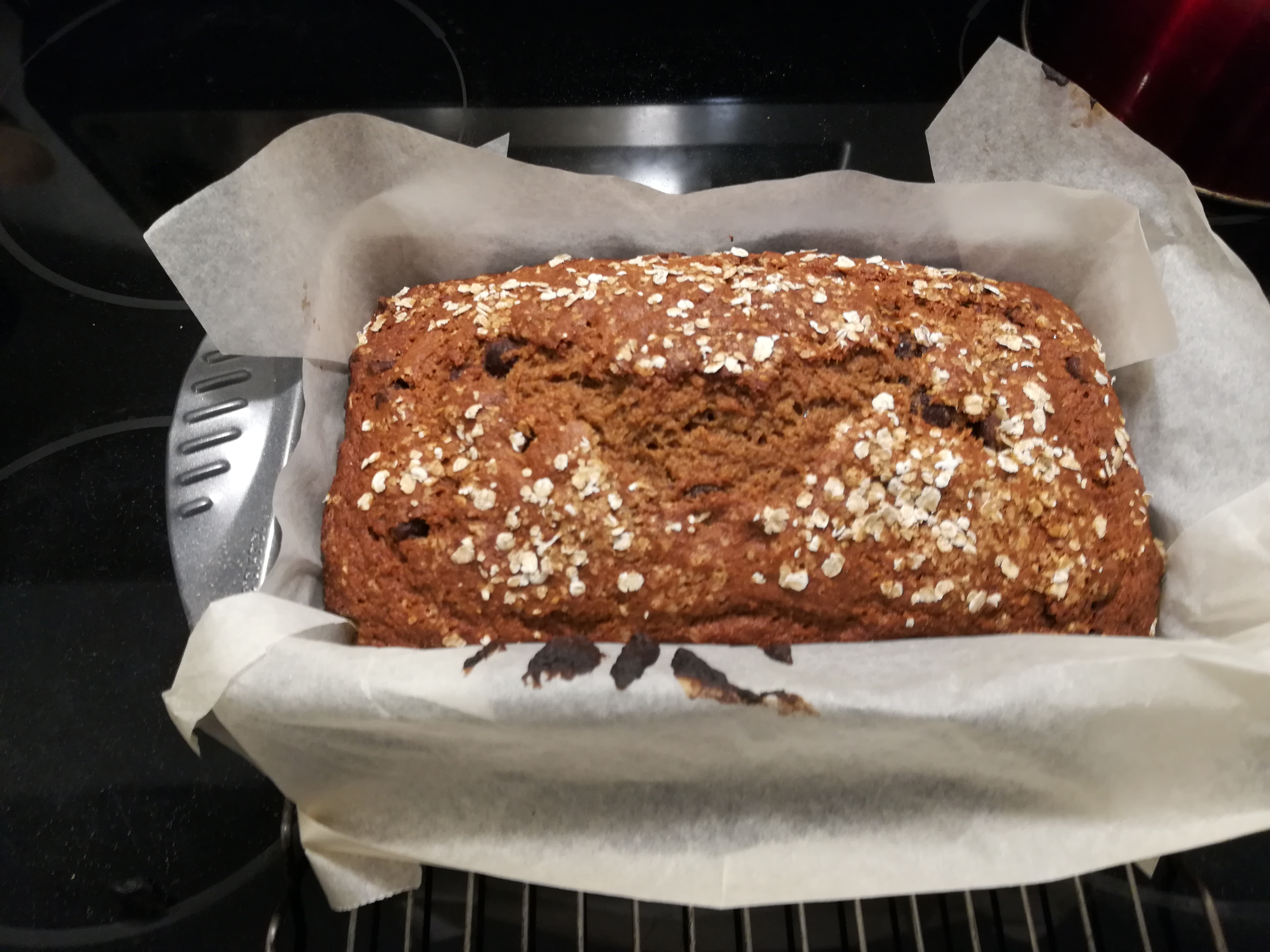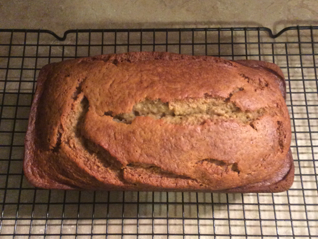 4 bananas, ripe 1 cup sugar 1?2 cup applesauce 1 teaspoon vanilla extract 2 eggs 1 teaspoon baking soda 1 tablespoon baking powder 1 teaspoon salt 2 cups flour
